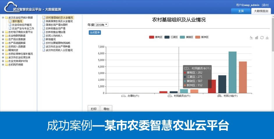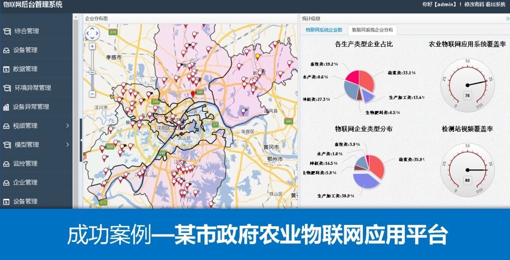 丨概述 新東網(wǎng)智慧農(nóng)業(yè)體系總體包含“一張圖”、“一個(gè)中心”和“四個(gè)應(yīng)用”。智慧農(nóng)業(yè)GIS“一張圖” ,其主要涉及展示農(nóng)業(yè)基礎(chǔ)地理信息數(shù)據(jù)、信息惠農(nóng)生產(chǎn)、經(jīng)營、管理及服務(wù)應(yīng)用內(nèi)的相關(guān)數(shù)據(jù)等。智慧農(nóng)業(yè)數(shù)據(jù)中心的建立,將構(gòu)建農(nóng)業(yè)數(shù)據(jù)標(biāo)準(zhǔn)化體系,對多類型異質(zhì)、海量數(shù)據(jù)綜合處理與分析,能夠?qū)崿F(xiàn)設(shè)施農(nóng)業(yè)生產(chǎn)各個(gè)環(huán)節(jié)的精準(zhǔn)管理、預(yù)測市場行情、智能化生產(chǎn)、供應(yīng)鏈追蹤、拉動(dòng)產(chǎn)業(yè)鏈,以較少的投入達(dá)到同等收入或更高收入,使廣大農(nóng)民取得經(jīng)濟(jì)效益。四個(gè)應(yīng)用涵蓋了生產(chǎn)、經(jīng)營、服務(wù)和管理,將進(jìn)一步推進(jìn)農(nóng)業(yè)生產(chǎn)智能化、農(nóng)產(chǎn)品營銷網(wǎng)絡(luò)化、農(nóng)業(yè)信息服務(wù)便捷化以及農(nóng)業(yè)行政管理高效化。 互聯(lián)網(wǎng)+農(nóng)業(yè)大數(shù)據(jù)平臺(tái)網(wǎng) 丨概述 以農(nóng)業(yè)大數(shù)據(jù)中心,農(nóng)業(yè)物聯(lián)網(wǎng)應(yīng)用系統(tǒng)、農(nóng)業(yè)監(jiān)管與指揮調(diào)度系統(tǒng)、農(nóng)業(yè)綜合服務(wù)系統(tǒng)為核心的智慧農(nóng)業(yè)信息化平臺(tái),促進(jìn)農(nóng)業(yè)信息化系統(tǒng)的有效整合,提升農(nóng)業(yè)信息化管理和服務(wù)水平。 丨案例 武漢市“互聯(lián)網(wǎng)+農(nóng)業(yè)”公共服務(wù)平臺(tái)項(xiàng)目:武漢市以著手建設(shè)以農(nóng)業(yè)大數(shù)據(jù)中心,農(nóng)業(yè)物聯(lián)網(wǎng)應(yīng)用系統(tǒng)、農(nóng)業(yè)監(jiān)管與指揮調(diào)度系統(tǒng)、農(nóng)業(yè)綜合服務(wù)系統(tǒng)為核心的智慧農(nóng)業(yè)信息化平臺(tái),平臺(tái)將促進(jìn)當(dāng)?shù)剞r(nóng)業(yè)信息化系統(tǒng)的有效整合,提升農(nóng)業(yè)信息化管理和服務(wù)水平,成為武漢市農(nóng)業(yè)發(fā)展的城市名片。 精準(zhǔn)扶貧管理平臺(tái)網(wǎng) 丨概述 由綜合信息管理平臺(tái)、GIS指揮作戰(zhàn)平臺(tái)、扶貧門戶網(wǎng)站、扶貧移動(dòng)APP等模塊組成,實(shí)現(xiàn)扶貧問題實(shí)地采集與績效考核、扶貧作戰(zhàn)精準(zhǔn)定位與指揮調(diào)度、扶貧數(shù)據(jù)動(dòng)態(tài)維護(hù)與項(xiàng)目管理、扶貧政策宣傳指導(dǎo)和成果推廣。 丨案例 武漢市精準(zhǔn)扶貧建設(shè)項(xiàng)目 界首市精準(zhǔn)扶貧建設(shè)項(xiàng)目 農(nóng)業(yè)物聯(lián)網(wǎng)應(yīng)用體系 丨概述 新東網(wǎng)農(nóng)業(yè)物聯(lián)網(wǎng)應(yīng)用管理平臺(tái)為農(nóng)業(yè)監(jiān)管部門提供對轄區(qū)各農(nóng)業(yè)經(jīng)營主體在設(shè)施種植業(yè)、畜禽養(yǎng)殖、水產(chǎn)養(yǎng)殖等方面的分類服務(wù)及管理功能,并為企業(yè)提供農(nóng)業(yè)生產(chǎn)環(huán)境的智能感知、智能預(yù)警、智能分析、專家在線指導(dǎo)、遠(yuǎn)程監(jiān)控等服務(wù),集中管理轄區(qū)內(nèi)企業(yè)農(nóng)業(yè)生產(chǎn)環(huán)節(jié)中通過傳感節(jié)點(diǎn)、視頻和無線通信網(wǎng)絡(luò)所采集的數(shù)據(jù)信息,利用數(shù)據(jù)分析能力為農(nóng)業(yè)生產(chǎn)提供決策分析與指導(dǎo)。 農(nóng)產(chǎn)品質(zhì)量安全追溯體系 丨概述 新東網(wǎng)農(nóng)產(chǎn)品溯源系統(tǒng)以二維碼為載體,對農(nóng)產(chǎn)品質(zhì)量安全進(jìn)行全程追溯。通過在種養(yǎng)殖基地、企業(yè)、家庭農(nóng)場應(yīng)用追溯采集系統(tǒng),并通過與農(nóng)產(chǎn)品質(zhì)量檢測專業(yè)設(shè)備的自動(dòng)對接,實(shí)現(xiàn)農(nóng)產(chǎn)品履歷信息、檢測信息的快速采集與實(shí)時(shí)上傳,從而保障農(nóng)產(chǎn)品質(zhì)量。并實(shí)現(xiàn)企業(yè)備案、種養(yǎng)殖基礎(chǔ)信息管理、投入品管理、生產(chǎn)記錄管理、檢測信息自動(dòng)上傳、合格率預(yù)警、視頻監(jiān)控以及APP移動(dòng)監(jiān)管等,涵蓋種植、養(yǎng)殖、水產(chǎn)、屠宰等多類業(yè)務(wù)范圍。 丨案例 武漢市農(nóng)產(chǎn)品安全追溯系統(tǒng) 中山市肉類蔬菜流通追溯體系 One農(nóng)智慧農(nóng)場 丨概述 One農(nóng)是新東網(wǎng)科技打造的農(nóng)業(yè)板塊拳頭產(chǎn)品,其中包含細(xì)分化產(chǎn)品One農(nóng)幫、One農(nóng)政及One農(nóng)匯。One農(nóng)產(chǎn)品將通過數(shù)字化轉(zhuǎn)型及服務(wù)助力農(nóng)業(yè)生產(chǎn)現(xiàn)代化、標(biāo)準(zhǔn)化、智能化,為客戶提供多元化的互聯(lián)網(wǎng)+農(nóng)業(yè)專屬信息化服務(wù)。 丨特性 1、為農(nóng)企提高對外形象 720°全景圖可立體生動(dòng)地展示農(nóng)場功能區(qū)域及設(shè)施,消費(fèi)者或客戶不上門也能體驗(yàn)到農(nóng)場美麗風(fēng)景。 2、為農(nóng)場實(shí)現(xiàn)數(shù)字化 農(nóng)場實(shí)時(shí)情況監(jiān)測,讓農(nóng)場主更好掌握農(nóng)產(chǎn)品情況,實(shí)現(xiàn)農(nóng)場科學(xué)化管理。 3、打造產(chǎn)品溯源檔案,讓消費(fèi)者更放心 產(chǎn)品地理信息可查詢、生長環(huán)境可視