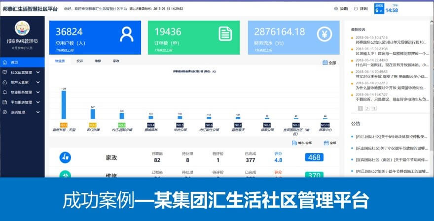 丨概述 智慧社區解決方案以物業為核心,覆蓋居民、物業、周邊商家、地產開發商,打造智慧社區生態圈,挖掘社區范圍內外資源潛力,建設高效、信息發達、經濟繁榮的新型現代化社區服務。“One家”是新東網自主研發、運營的智慧社區產品,為社區業主提供吃、喝、玩、樂、康、健、娛、文、教、公“一站式”服務,為物業和地產增加多元化收益,提高業主滿意度、降低運營成本。 丨優勢 提供“一站式社區平臺”,為社區業主提供高效社區服務、便捷生活體驗和行使業主權利,為物業和地產增加多元化收益、提高業主滿意度和降低運營成本。 丨案例 1、四川邦泰物業有限公司樂山分公司 2、中國電信股份有限公司成都分公司 3、新希望地產 One家社區 丨概述 由新東網科技自主研發和運營的智慧社區平臺,以物業為核心,覆蓋居民、物業和周邊地產商,打造智慧社區生態圈,挖掘社區范圍內外資源潛力,為社區業務提供“一站式”服務;為物業和地產增加多元化收益,提高業務滿意度、降低運營成本。 丨成功案例